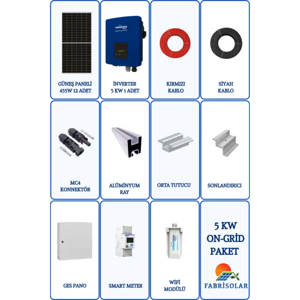 Güneş Enerjisi On Grid 5Kw Monofaze Solar Paket Sistemi