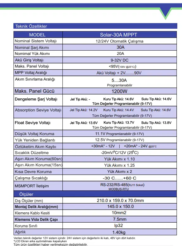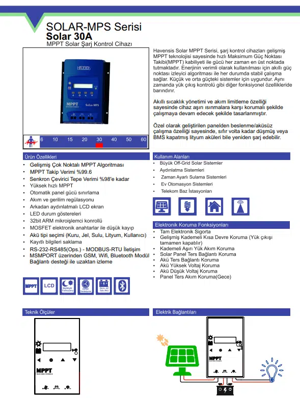 | Etiketler | Havensis 30A Mppt Solar Şarj Kontrol Cihazı – 12V / 24V |