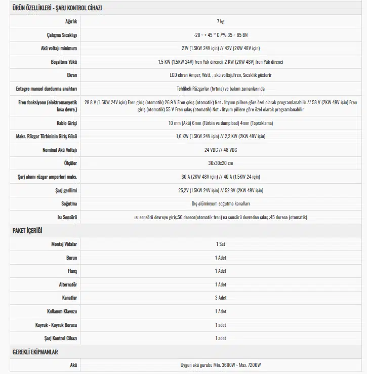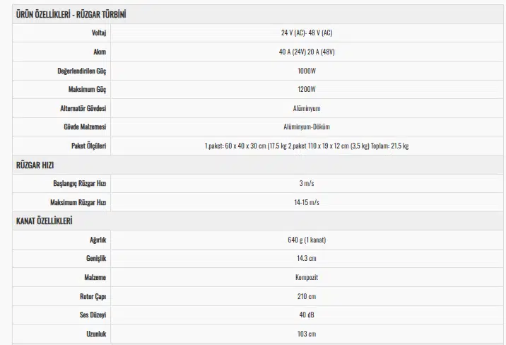 | Etiketler | İsta Breeze 1000 Watt 24V Rüzgar Türbini + Şarj Kontrol Cihazı |