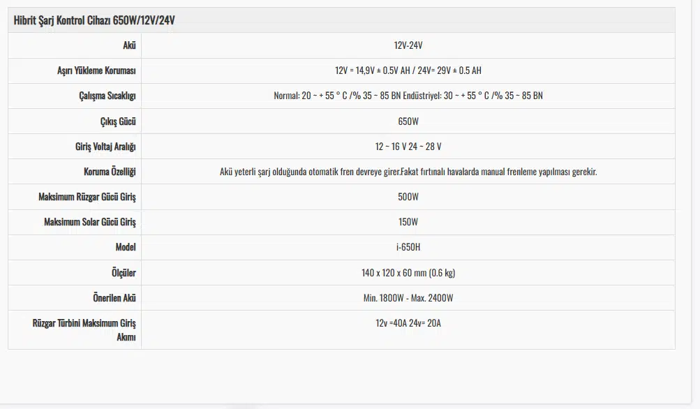 | Stok Kodu | 650W-12V-sarj-kontrol |