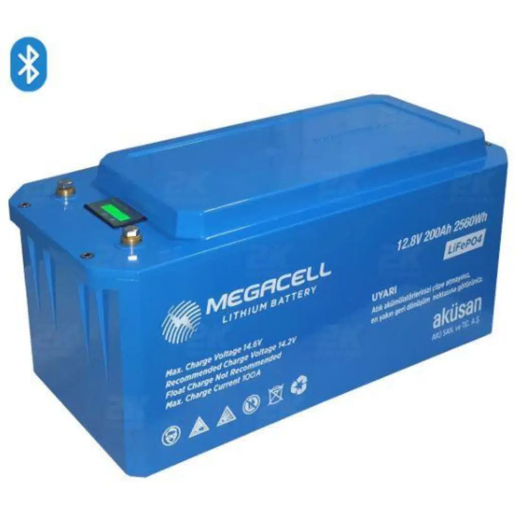 Megacell 12.8V 200Ah Bluetooth Lifepo4 Lityum Demir Fosfat Akü Abs Kasa