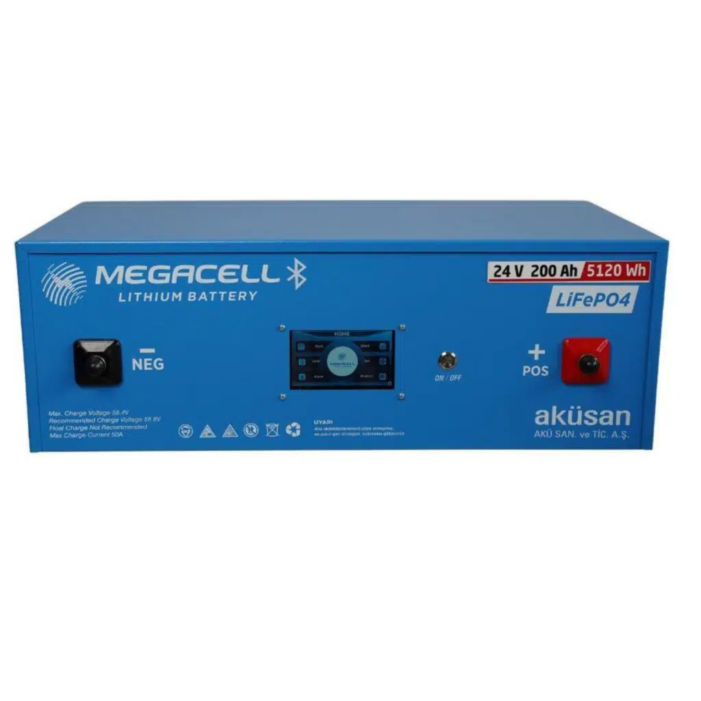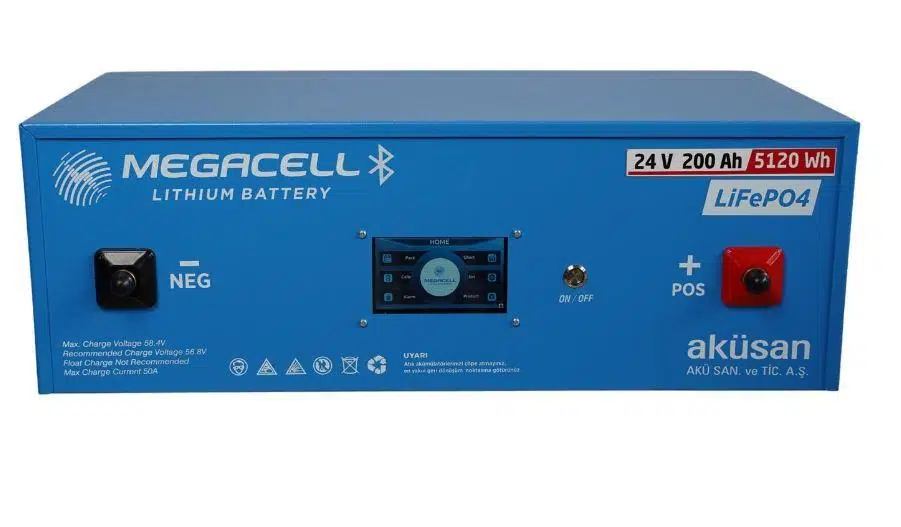 MEGACELL derin deşarj, hızlı verimli şarj ve yüksek döngüye sahip %100 yerli geliştirilmiş BMS teknolojisi ile seri ve paralel kullanım imkanı sunan Türkiye’nin yeni Lityum Demir Fosfat (LiFePO4) Aküsü