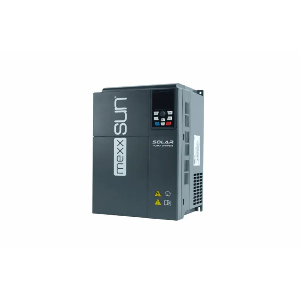Mexxsun30HP (22kW) Trifaze Solar Pompa Sürücüsü, tarımsal sulama, endüstriyel uygulamalar ve büyük ölçekli su sistemleri için tasarlanmış yüksek kapasiteli bir sürücü sistemidir. Güneş enerjisinden direkt beslenerek pompa motorlarını çalıştırır, enerji tasarrufu ve sürdürülebilir kullanım sağlar.