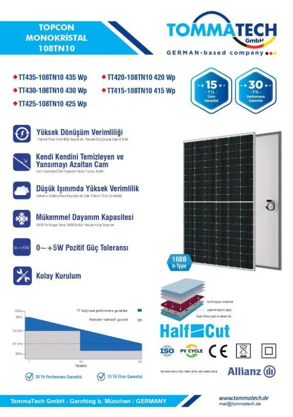 | Etiketler | TommaTech 430W Multibusbar Monokristal Topcon Güneş Paneli |