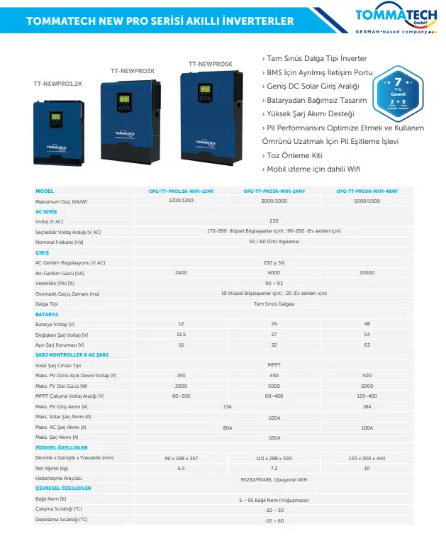 | Etiketler | Tommatech New Pro 5K 5Kw 48V Mppt 1Faz Wıfı Tam Sinüs Akıllı İnverter |
