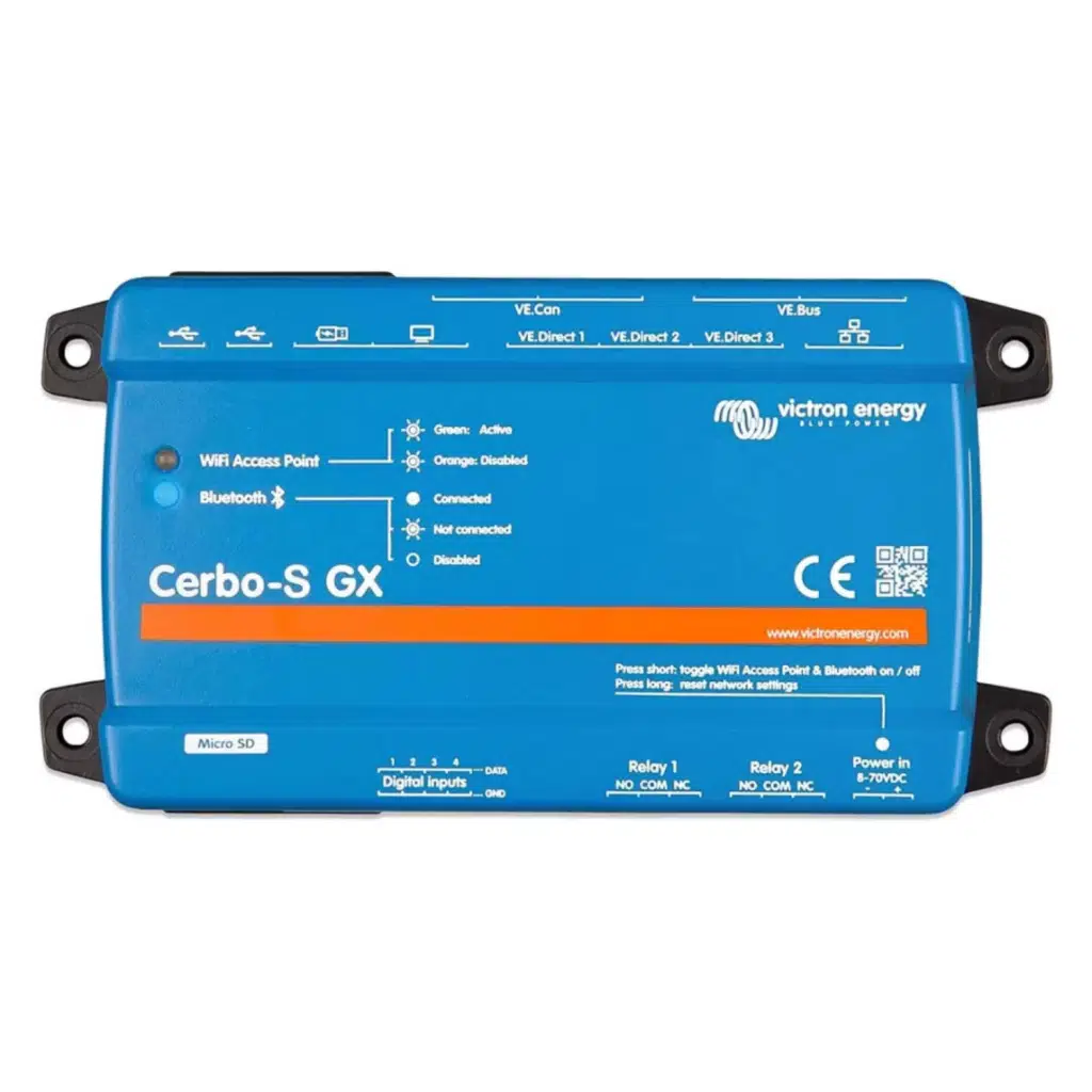 Victron Cerbo-S GX, sistem performansını en üst seviyeye çıkarmak için geliştirilmiş bir iletişim merkezidir. Victron Uzaktan Bağlantı Yönetimi (VRM) portalı, GX Touch ekranları ve Bluetooth bağlantısı ile uzaktan izleme ve kontrol imkanı sunar.