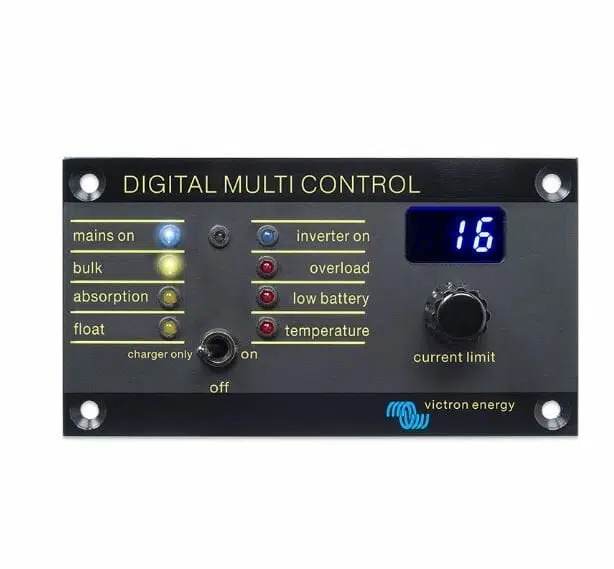 Victron Digital Multi Control 200/200A, MultiPlus ve Quattro serisi için geliştirilmiş bir kontrol panelidir. PowerControl ve PowerAssist teknolojileri sayesinde iki AC kaynağı için akım limit ayarı sağlar.