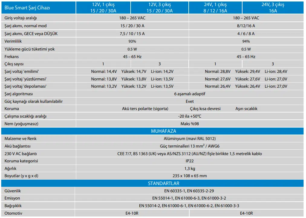 Victron Energy Blue Smart Ip22 Şarj Cihazı 12V/20A - 1 Çıkışlı (Djmstvz6)