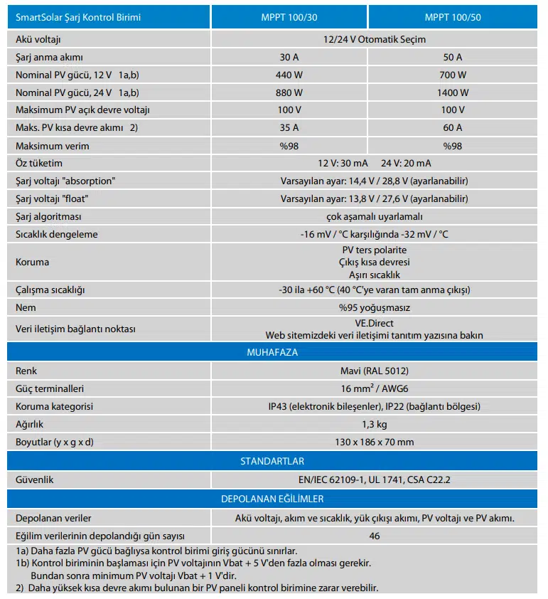 | Etiketler | Victron Smartsolar Mppt 100/50 – Bluetooth Özellikli Solar Şarj Kontrol Cihazı |