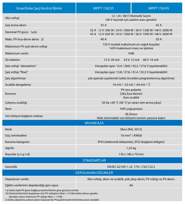 | Etiketler | Victron Smartsolar Mppt 150/45-Tr – Bluetooth Özellikli Solar Şarj Kontrol Cihazı |